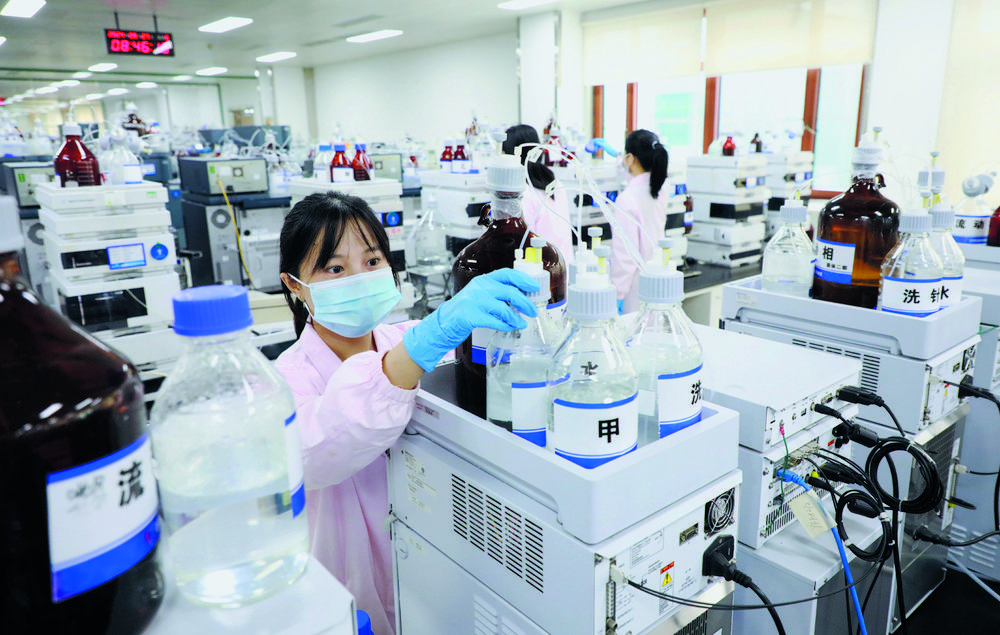 在石家庄四药药物研究院,研发人员正在进行新药的研发实验。本报首席记者 张 震 摄